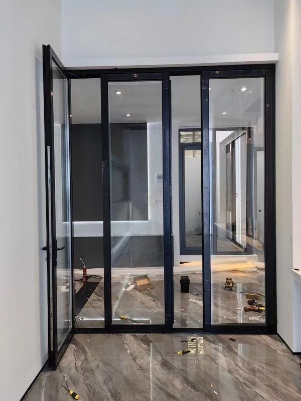 Pintu kaca lipat aluminium dengan kaca ganda atau tiga memiliki beberapa panel kaca dengan ruang di antara yang sering diisi dengan gas argon.,meningkatkan efisiensi energi secara keseluruhan.